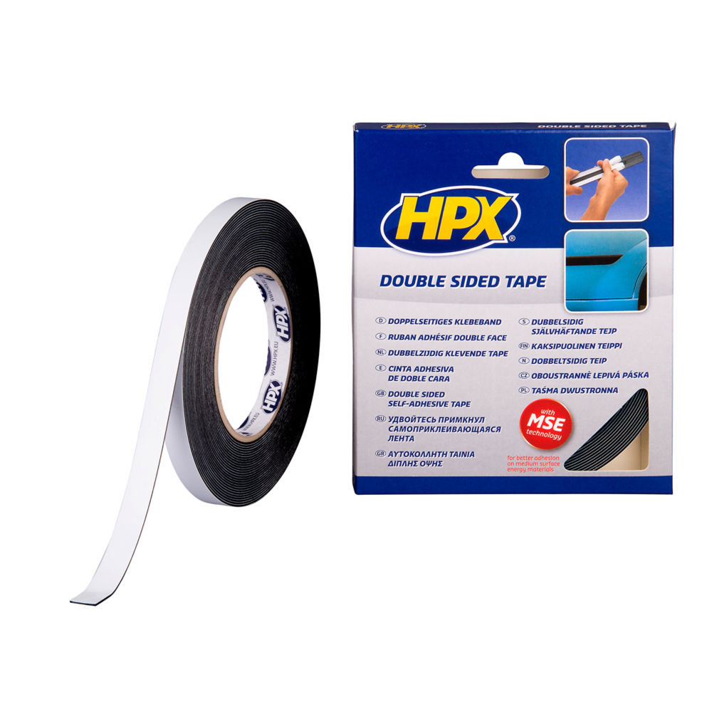 HPX Double Sided Tape - 12mm x 10m - Zwart